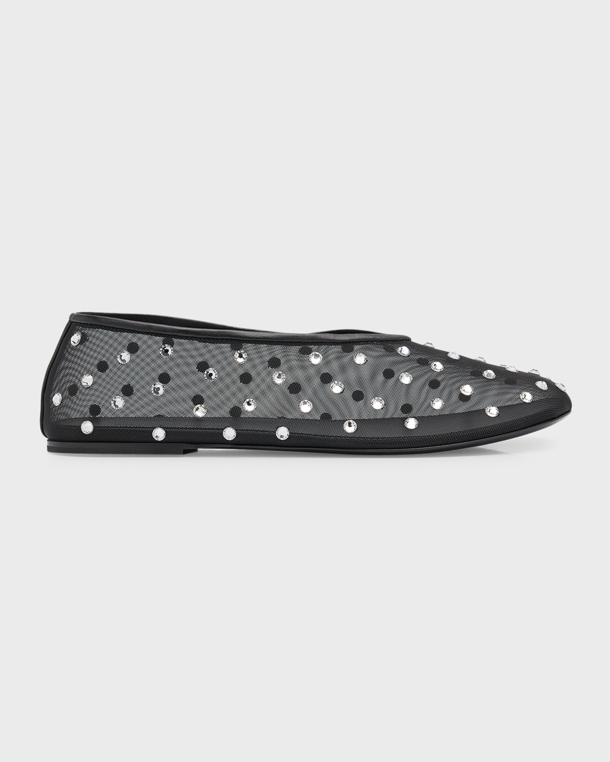 - Khaite "Marcy" crystal studded sheer mesh fabric ballerina flats - Round toe - Slip-on style - Made in Italy