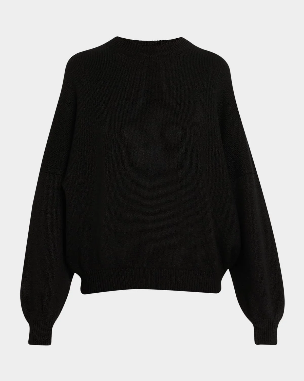 Khaite "Margaux" sweater Crew neckline Long sleeves Drop shoulders Loose fit Ribbed cuffs and hem Pullover style Cashmere Dry clean Made in Italy