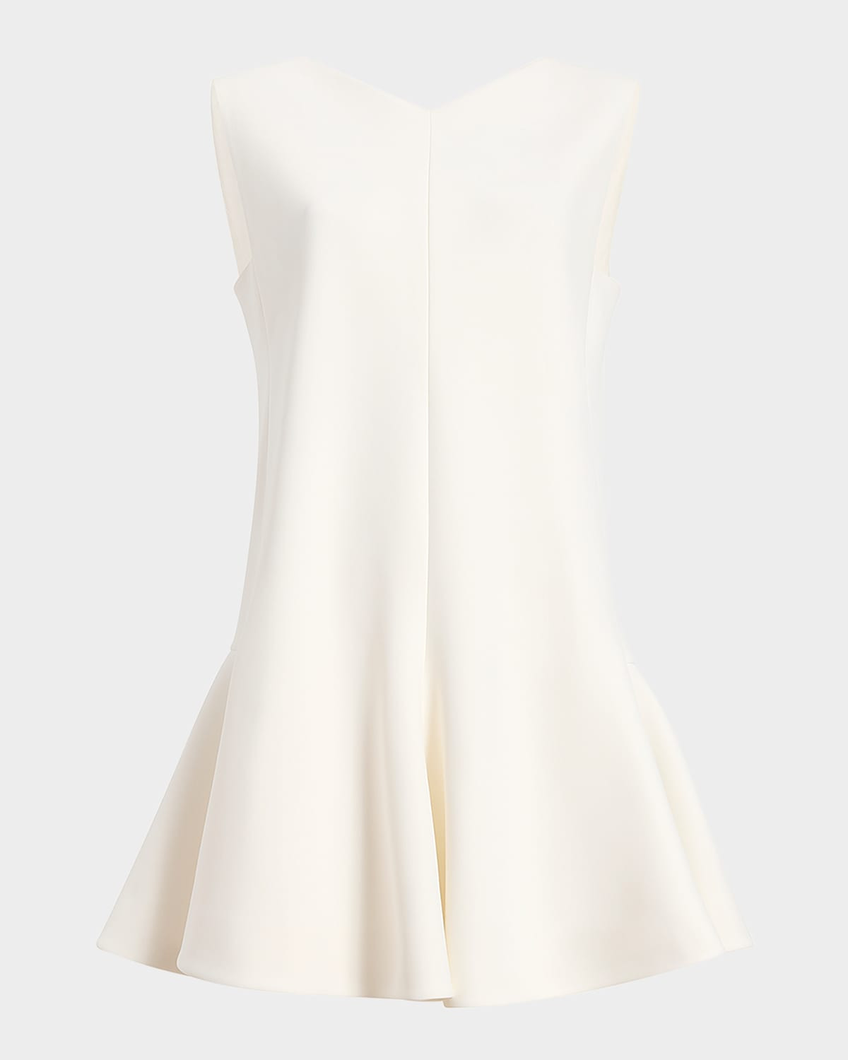 - Khaite "Mel" dress featuring a low back and flounce hip panels - V neckline; low V back - Sleeveless - Shift silhouette - Mid-thigh length - Slipover style - Viscose - Dry clean - Made in Italy