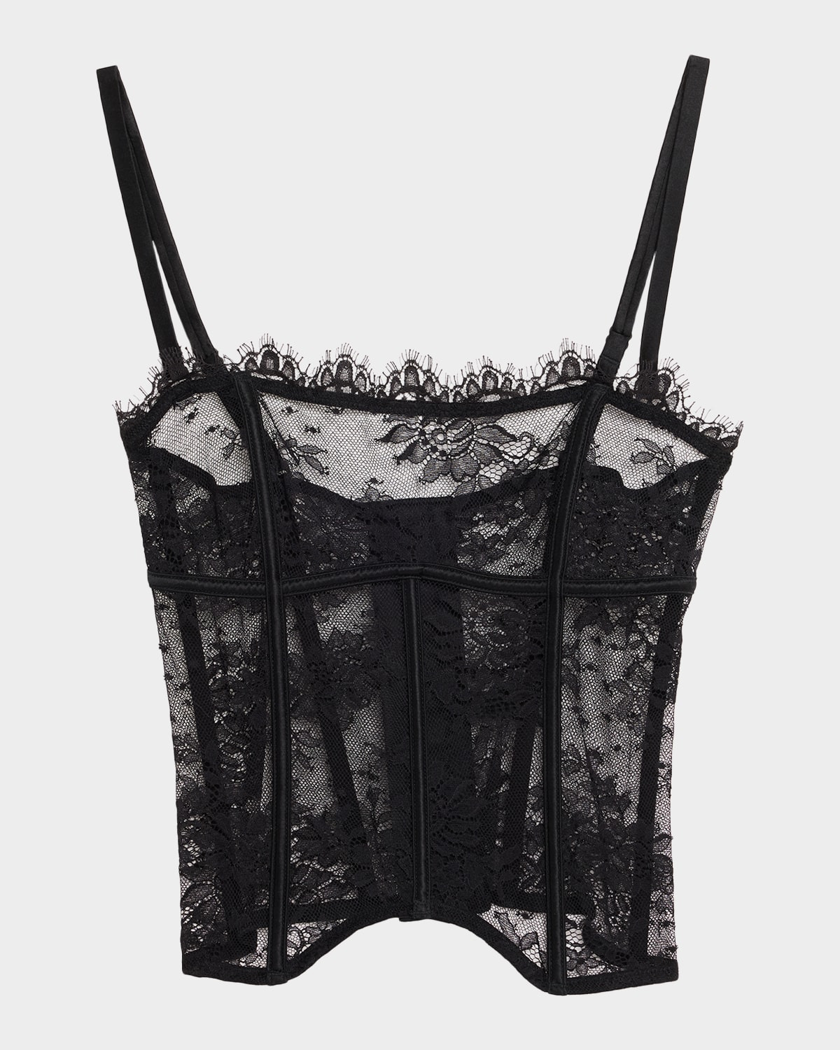 Kiki De Montparnasse "Jolie" bustier designed in intricate stretch Leavers lace and stretch charmeuse Scalloped strapless neckline Removable, adjustable shoulder straps Formfitting Hookandeye back closure Nylon/polyamide/cotton Dry clean Imported