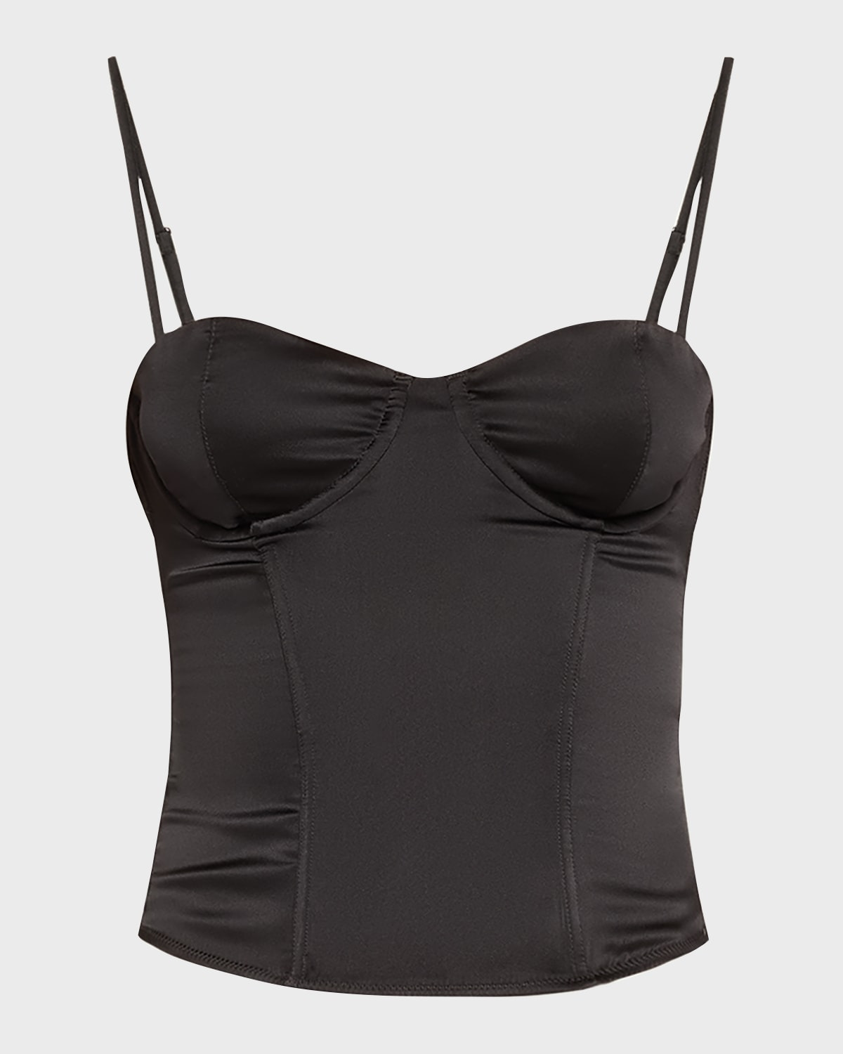 Kiki De Montparnasse "Tous Les Jours" bustier in silk stretch charmeuse Sweetheart neckline Sleeveless Adjustable straps Slim fit Hookandeye back closure Shaping Level: Medium control Silk/spandex Imported