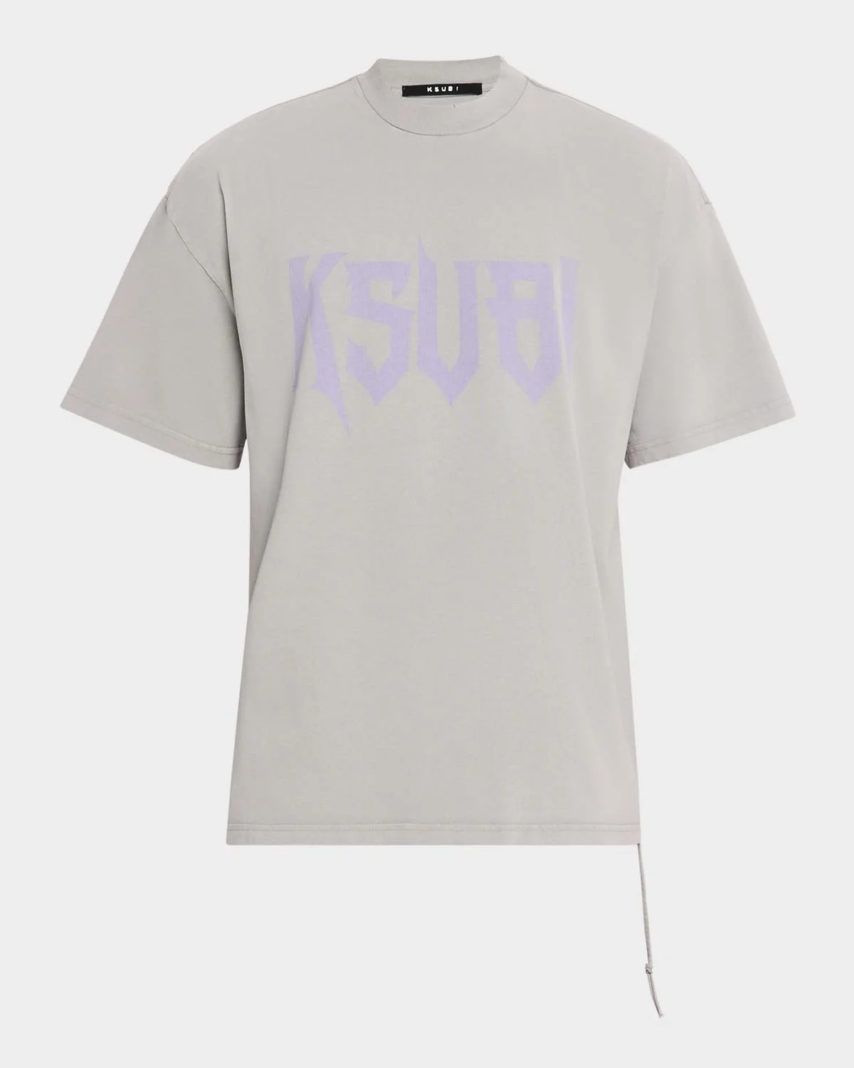 Cut in an oversized boxy fit, the "Blasted Ekcess" Tshirt from Ksubi is styled with large logo text and the signature rats tail. Crew neckline Short sleeves Pullover style Cotton Machine wash cold Made in Portugal