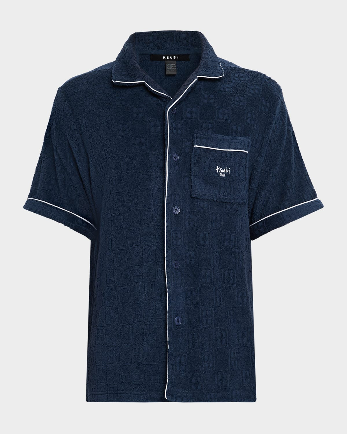- Ksubi resort shirt crafted from premium terry toweling jacquard highlighted with the signature t-box motif and contrast piping - Notch collar - Button front - Branded buttons - Short sleeves - Vented sides - Relaxed fit - Cotton - Machine wash cold - Imported