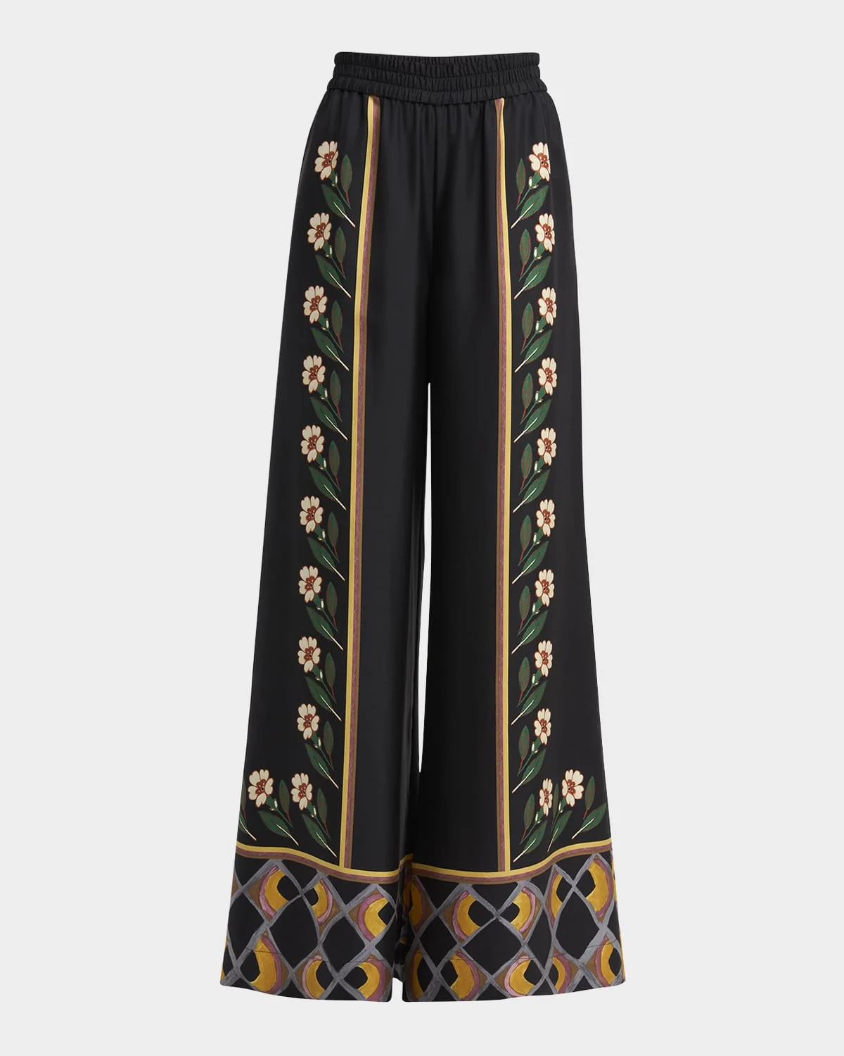 La DoubleJ silk twill Palazzo pants featuring a handplaced Dazed print and an elasticized waistband High rise Side slip pockets Wide legs Full length Pullon style Silk Dry clean Made in Italy