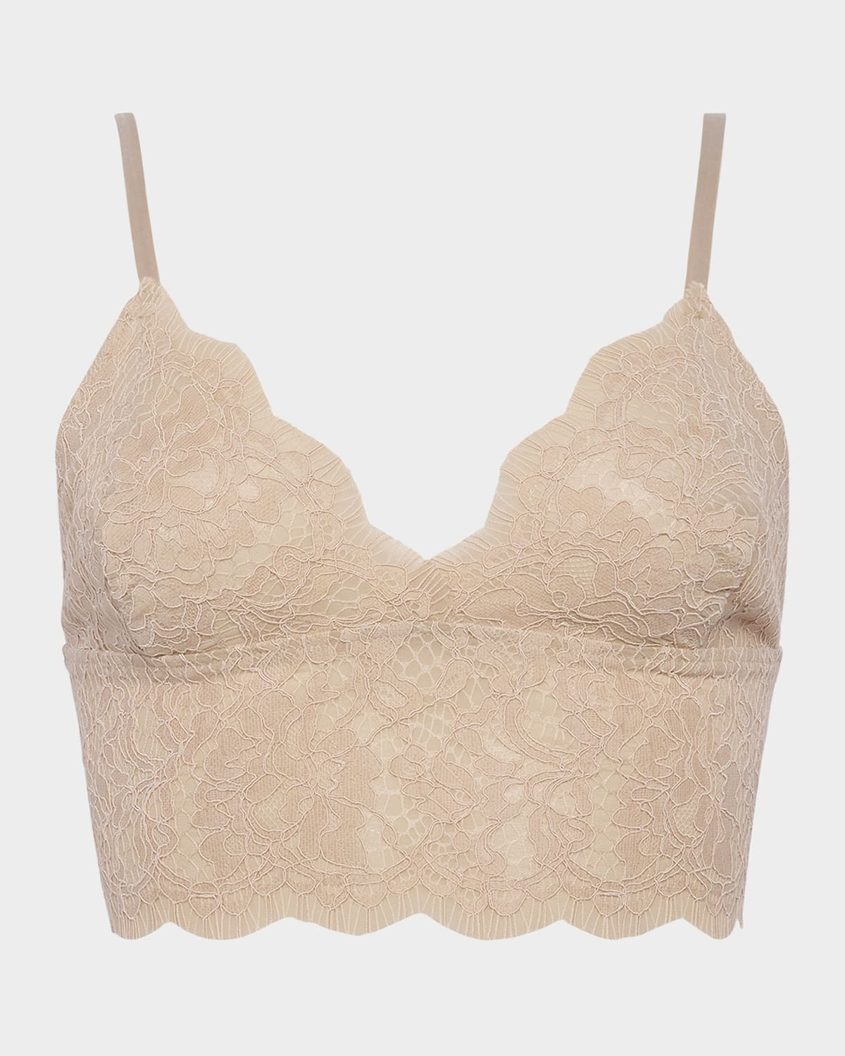 - L'Agence "Aislin" bralette top in a floral lace construction - V neckline - Sleeveless - Fitted - Cropped hem - Back hook-and-eye closure - Polyester - Dry clean - Imported
