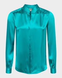 - L'Agence "Bianca" silk charmeuse blouse, gathered at shoulder. - V neckline; concealed button front. - Long sleeves; button cuffs. - Relaxed fit. - Silk. - Imported.