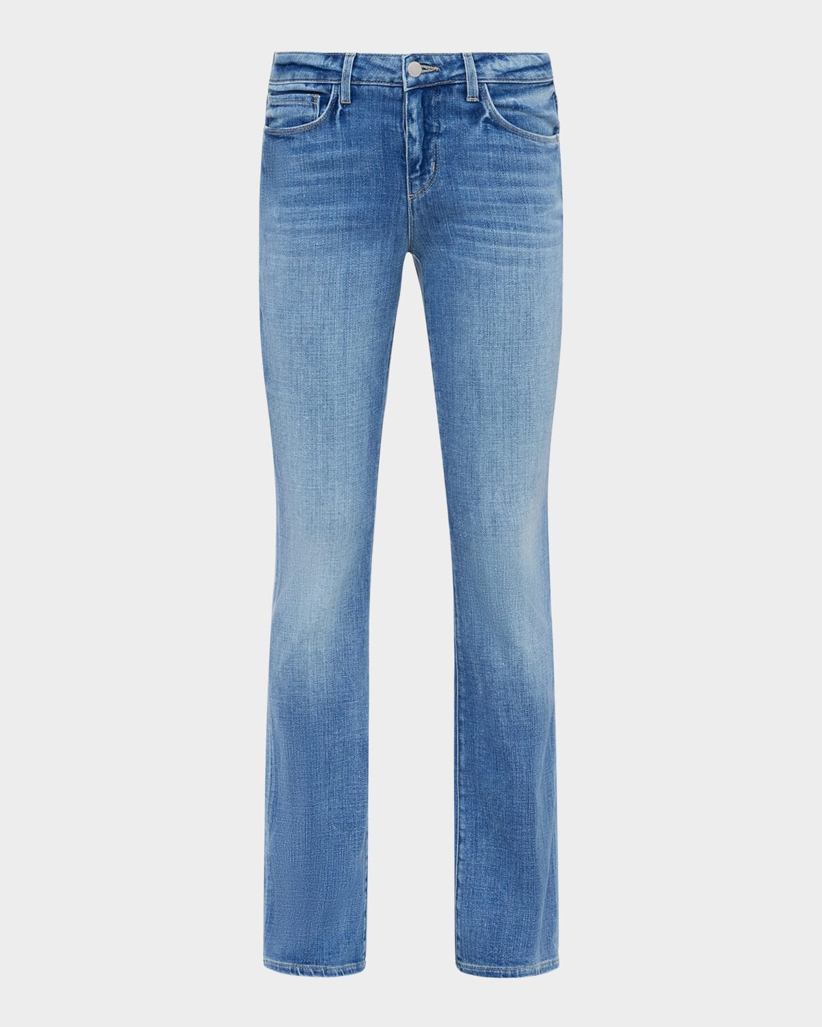 - L'Agence "Cara" bootcut jeans in faded medium-wash denim - Approx. 8.5" rise; 33" inseam - Low-rise; sits at the hip - Five-pocket style - Fitted through the hip and thigh - Full length - Button/zip fly; belt loops - Cotton/polyester/spandex - Made in USA