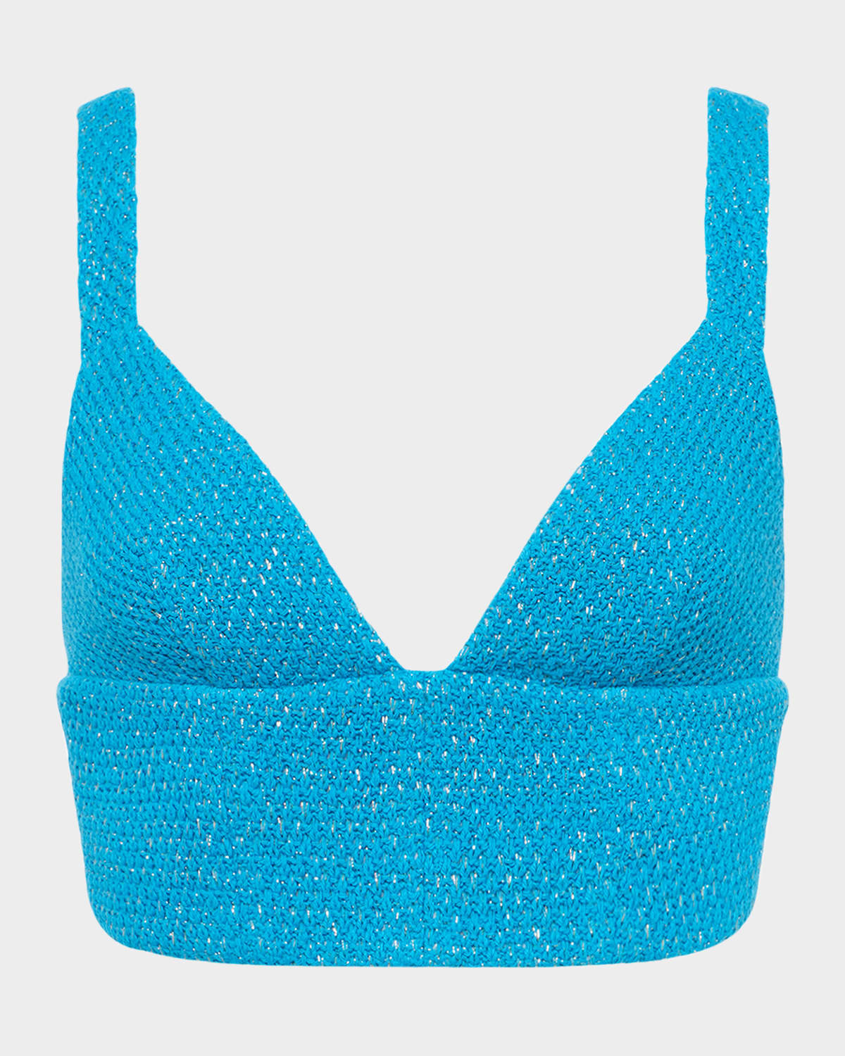 - L'Agence "Castalila" plunging knit bra top - Approx. 10"L from shoulder to hem - Sweetheart neckline - Wide straps - Fitted - Cropped - Hook closure - Cotton/polyester - Dry clean - Imported - Model is 5'10"/177cm.