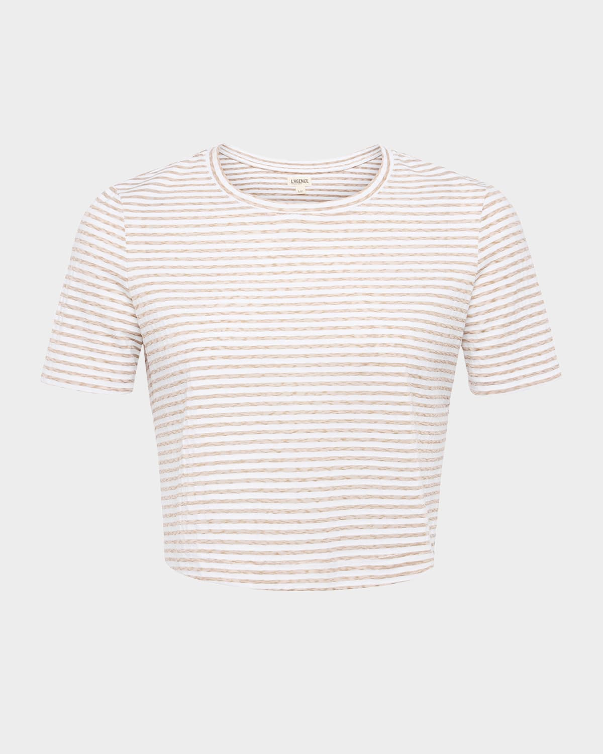 - L'Agence "Donna" soft knit tee - Crew neckline - Short sleeves - Cropped fit - Pullover style - Cotton/polyester - Made in USA