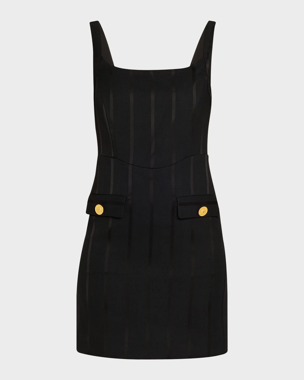 L'Agence's "Helen" mini dress is crafted from twill Italian suiting fabric with a subtle satin stripe in a flattering corsetstyle silhouette Approx. 26.6"L from shoulder to hem Square neckline Sleeveless Front flap pockets Hem falls above the knee Bodyskimming silhouette Center back zipper Polyester/viscose/elastane Dry clean Imported