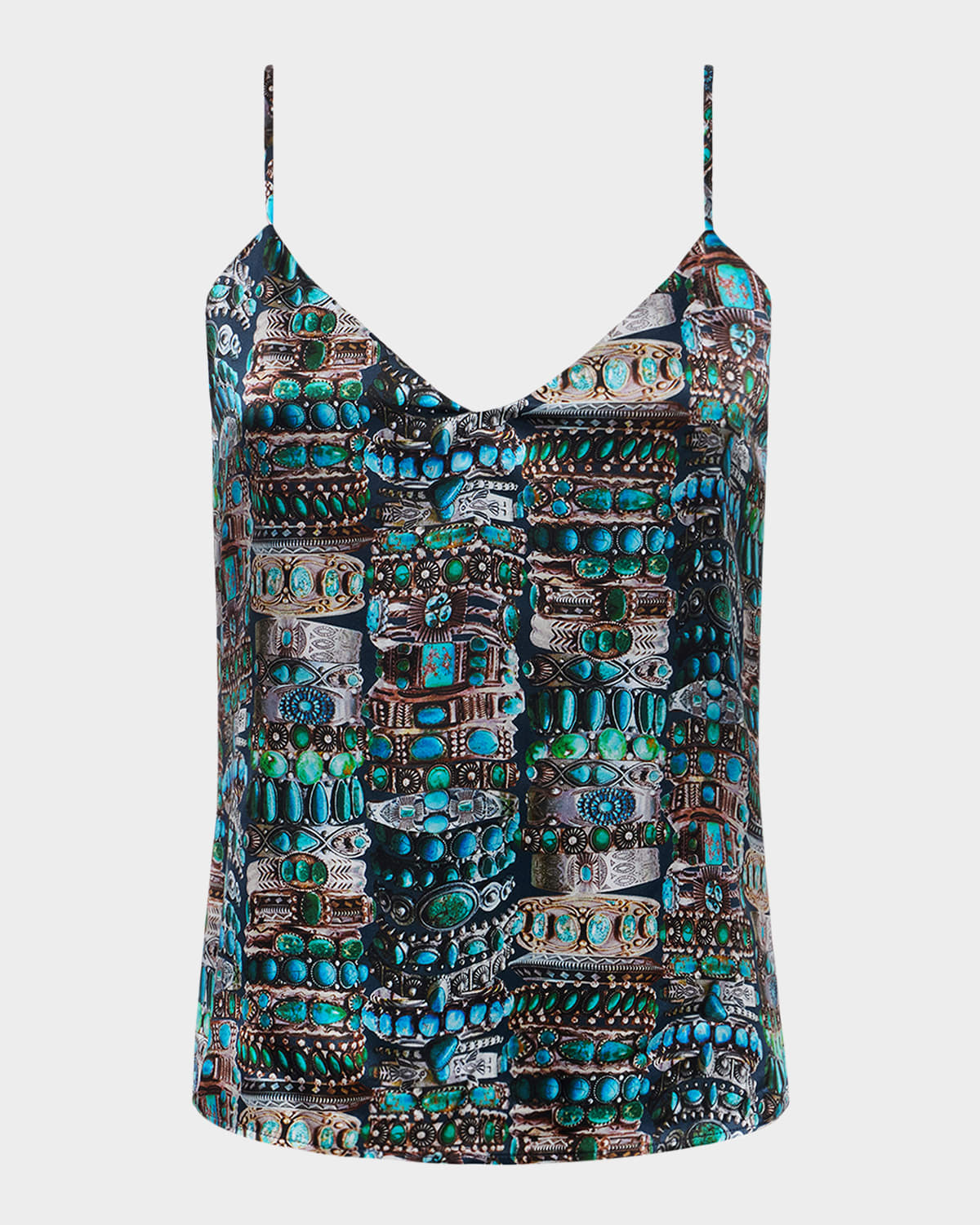 - L'Agence "Jane" tank top illustrated with a multi-western bracelet print - V neckline - Sleeveless - Mini side slits - Relaxed fit - Hip length - Slipover style - Silk - Dry clean - Imported