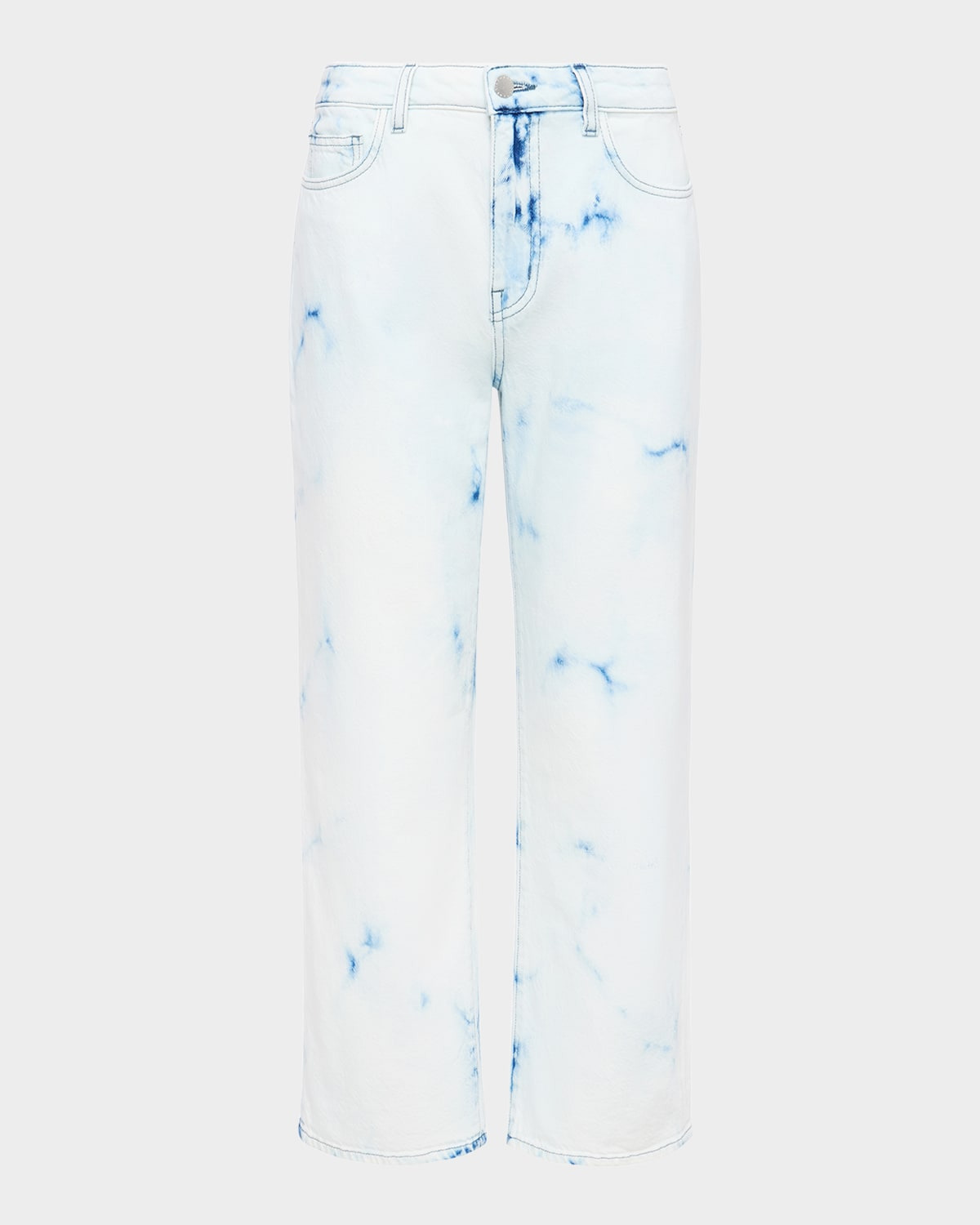 - L'Agence "June" stovepipe jeans in tie-dye denim - Approx. 10.5" rise; 26" inseam - Ultra-high rise - Five-pocket style - Loose fit - Cropped length - Button/zip fly; belt loops - Cotton - Made in USA