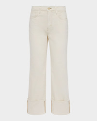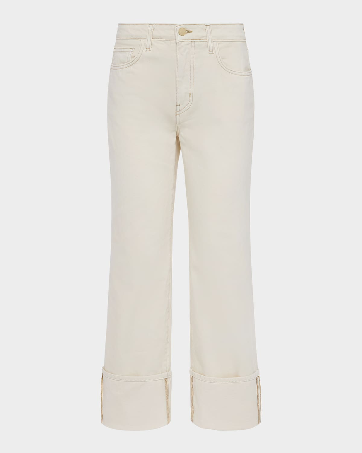 - L'Agence "Leighton" stovepipe jeans in white denim - Approx. 10.8" rise; 26" inseam - Ultra-high rise - Five-pocket style - Loose fit - Cropped, cuffed hem - Button/zip fly; belt loops - Cotton - Made in USA