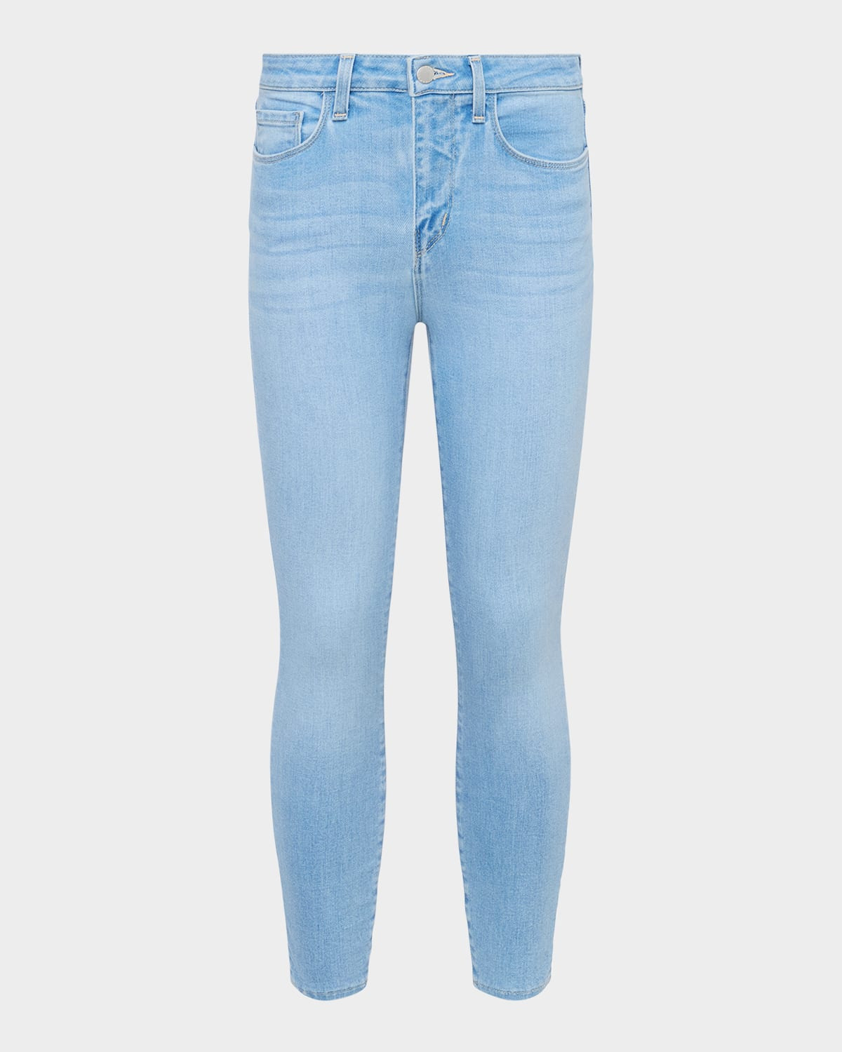 - L'Agence "Margot" jeans in stretch denim - Mid rise sits high on hip - Five-pocket style - Fitted through skinny legs - Cropped fit - Button/zip fly; belt loops - Dry clean - Made in USA - Size Note: Height: 5'11"/ waist 24”/ hips 35"/ bust 31" - Model is wearing size 25