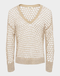- L'Agence "Nashwa" open-knit sweater with sequin-embellished accents - V neckline - Dropped shoulders - Long sleeves - Relaxed fit - Hip length - Ribbed cuffs and hem - Pullover style - Polyester/cotton/nylon/polyamide - Dry clean - Imported