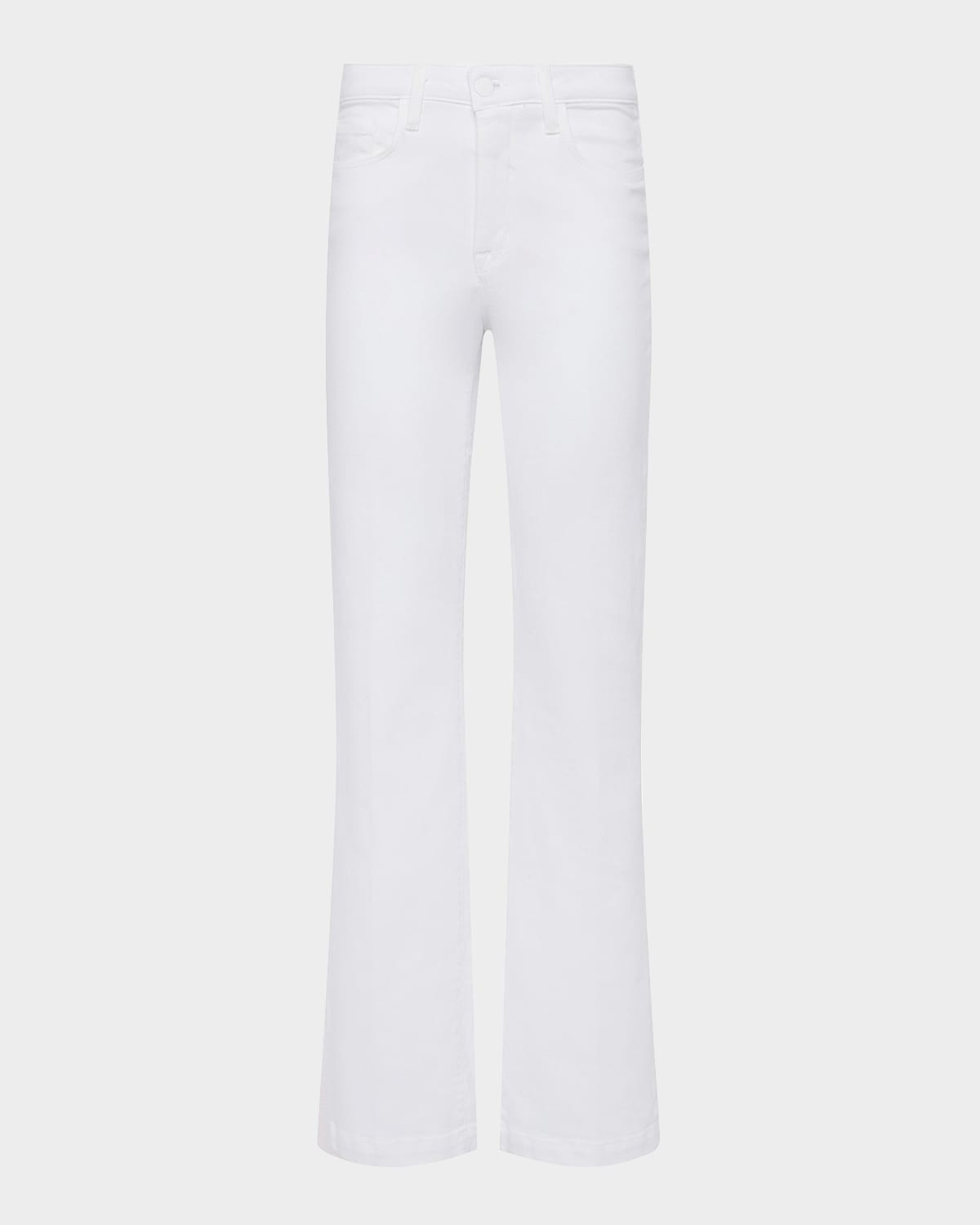 - L'Agence "Scottie" wide-leg jeans in white denim - Approx. 10" rise; 32" inseam - High rise - Five-pocket style - Straight fit - Full length - Button/zip fly; belt loops - Cotton/polyester/spandex - Dry clean - Made in USA