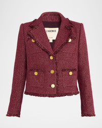 Designed from Italian tweed with lurex, the "Sylvia" jacket by L'Agence is finished with fringe trim and embossed golden buttons Approx. 20.8"L from shoulder to hem Notched collar; button front Padded shoulders Long sleeves; button cuffs Front patch pockets with button closures Hip length Cotton/polyester Dry clean Imported