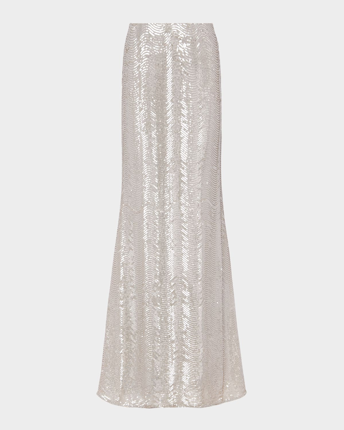 Embellished with shimmering sequins in a soft swirl pattern, the "Zeta" maxi skirt by L'Agence is crafted from a stretch knit for a comfortable fit High waist Full length Aline silhouette Invisible back zipper Polyester Spot clean only Imported