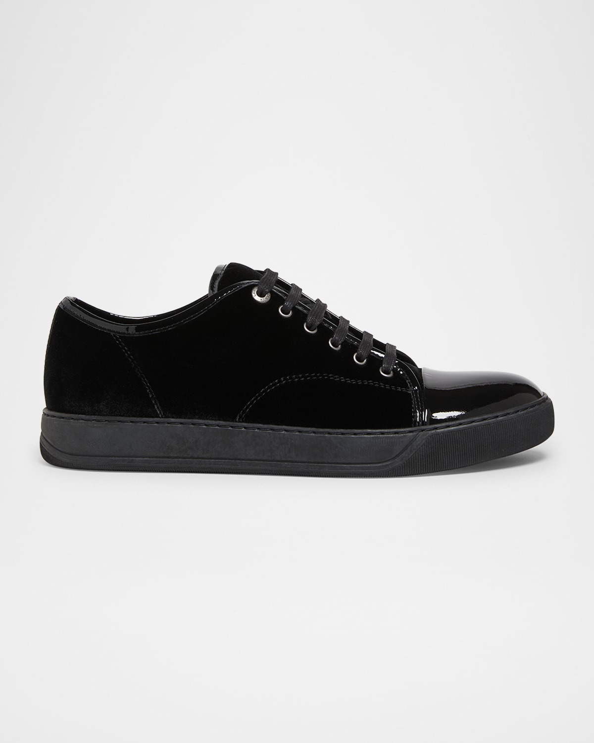 - Lanvin "DBB1" low-top sneakers in textile with a tonal patent leather cap toe and trim - Flat heel - Lace-up vamp - Leather lining - Rubber outsole - Made in Portugal