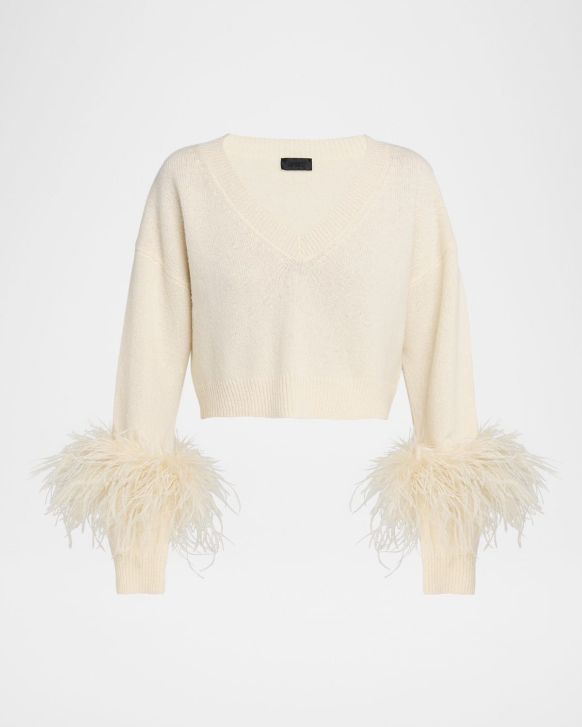 - LAPOINTE Cashmere cropped v neck sweater with feathers - V-Neck - Long Sleeve - Pullover style - Cashmere/feather - Made in Italy