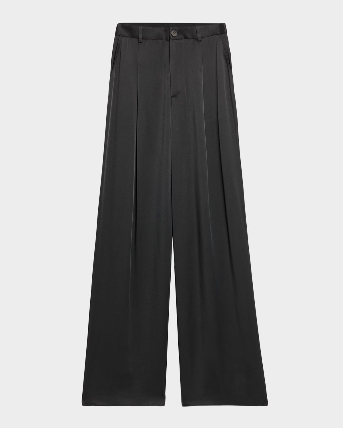 Pleated Wide-Leg Satin Pants