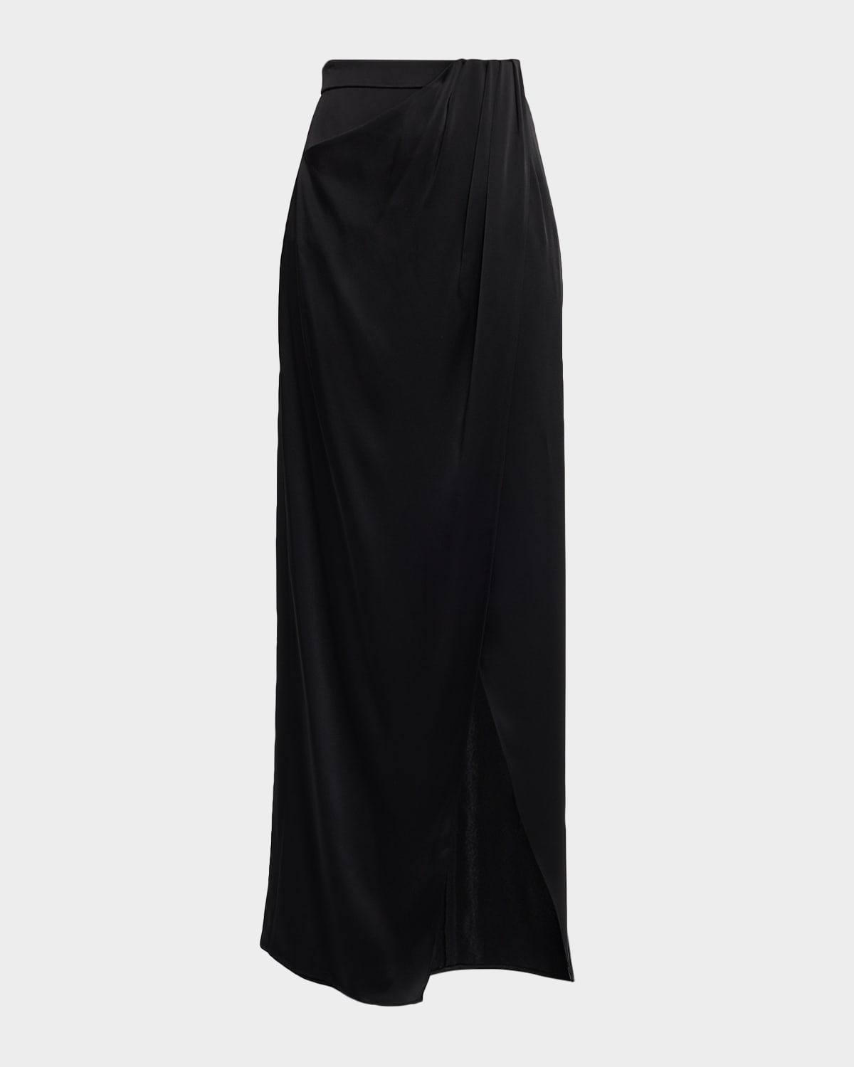 - Cut from luxurious doubleface satin, this LAPOINTE maxi skirt boasts a wrap-effect silhouette - High rise - Knee-hight front slit - Full length - Invisible side zipper - Acetate/viscose - Made in USA
