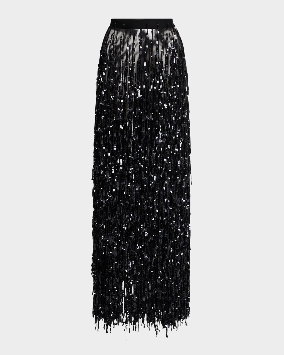 - LAPOINTE pencil skirt embellished in sequin fringe - High waist - Full length - Skirt falls straight from hip to hem - Hidden closure - Nylon/polyamide - Imported