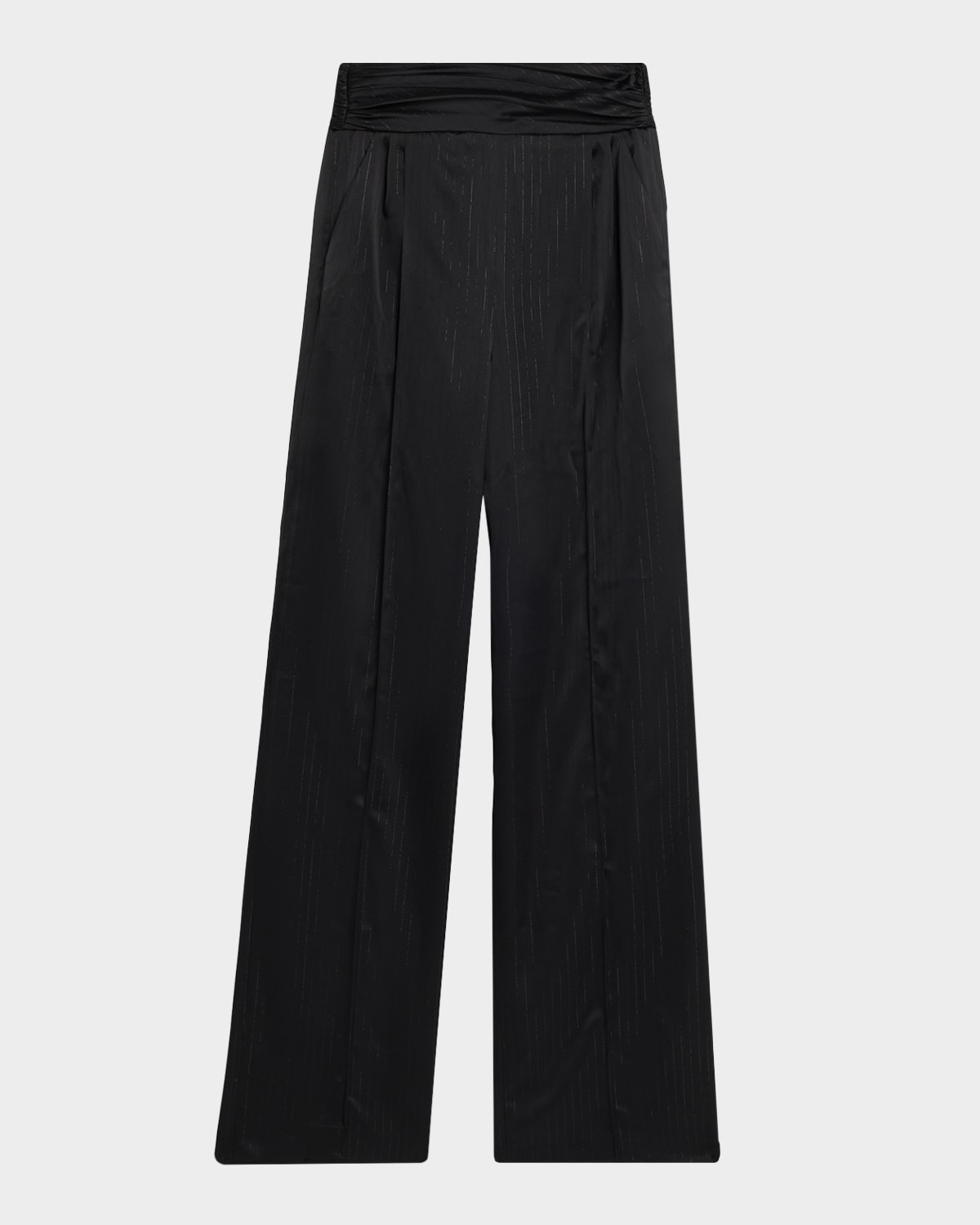 Cummerbund Pinstripe Satin Wide-Leg Trousers