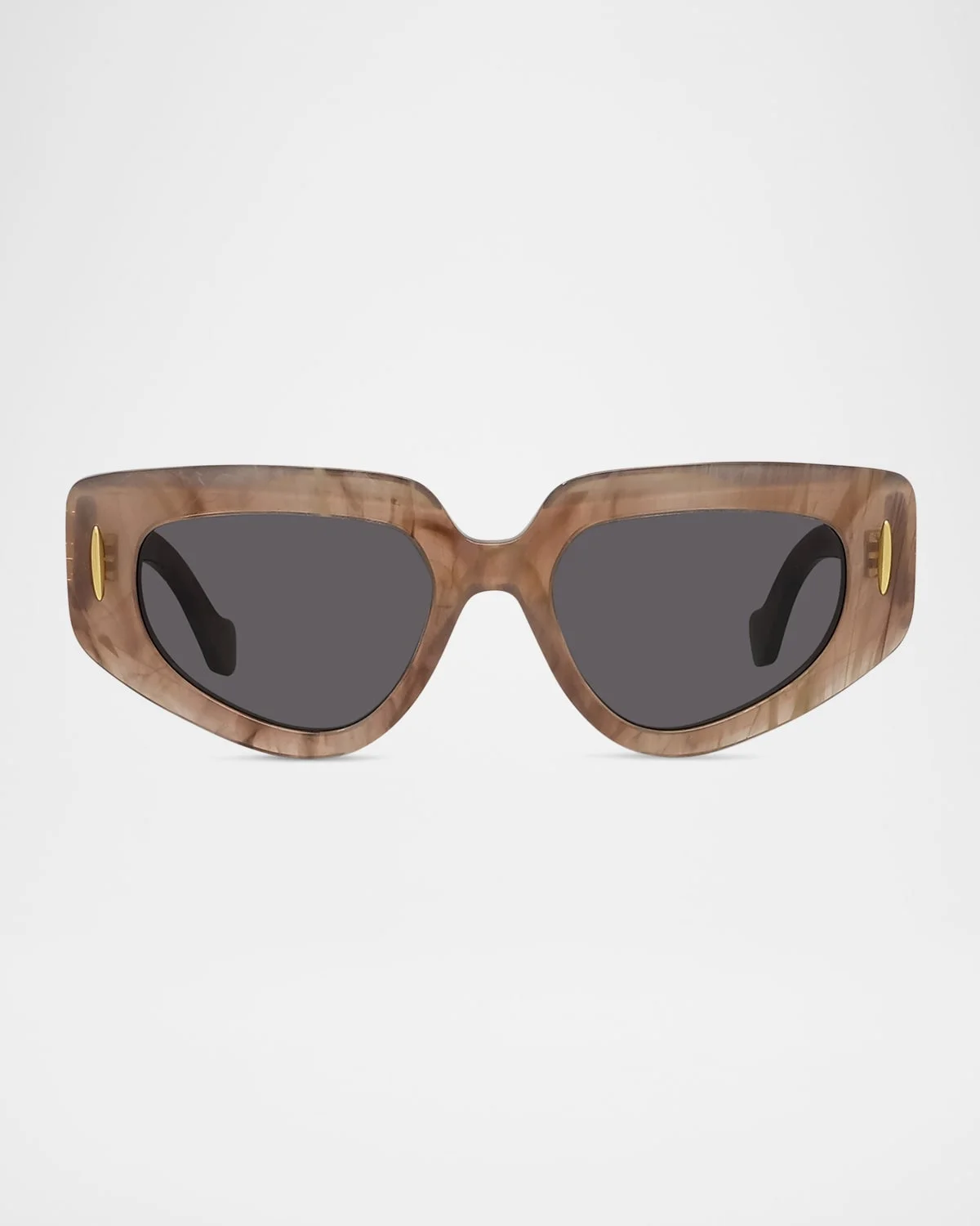 Loewe chic butterfly sunglasses crafted of rich acetate Eye/bridge/temple (in mm): 5119145 Monochromatic lenses Saddle nose bridge Anagram metal signature in relief on both temples Wide, tapered arms 100% UVA/UVB protection Acetate Hand wash Made in Italy
