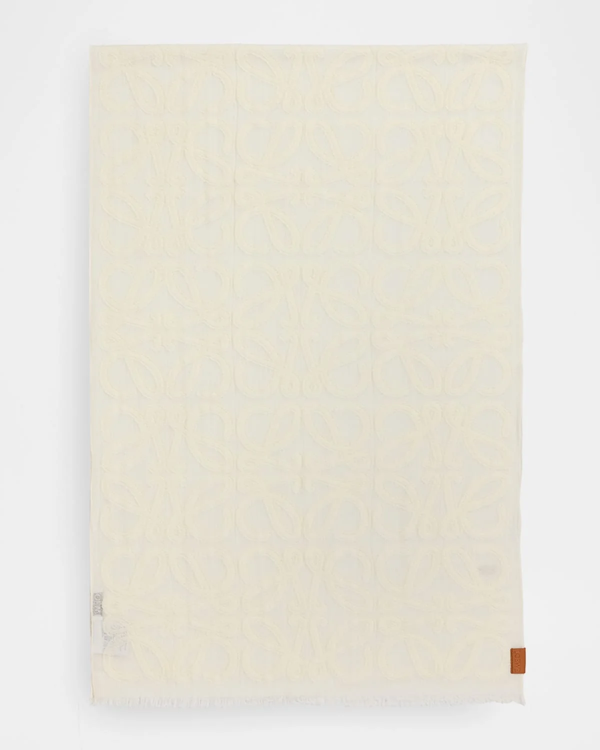 Loewe scarf adorned with an oversized, embossed Anagram pattern Approx. 27.55"W x 70.86"L Fringed edges May be styled multiple ways Wool/silk Professional cleaning recommended Made in Italy