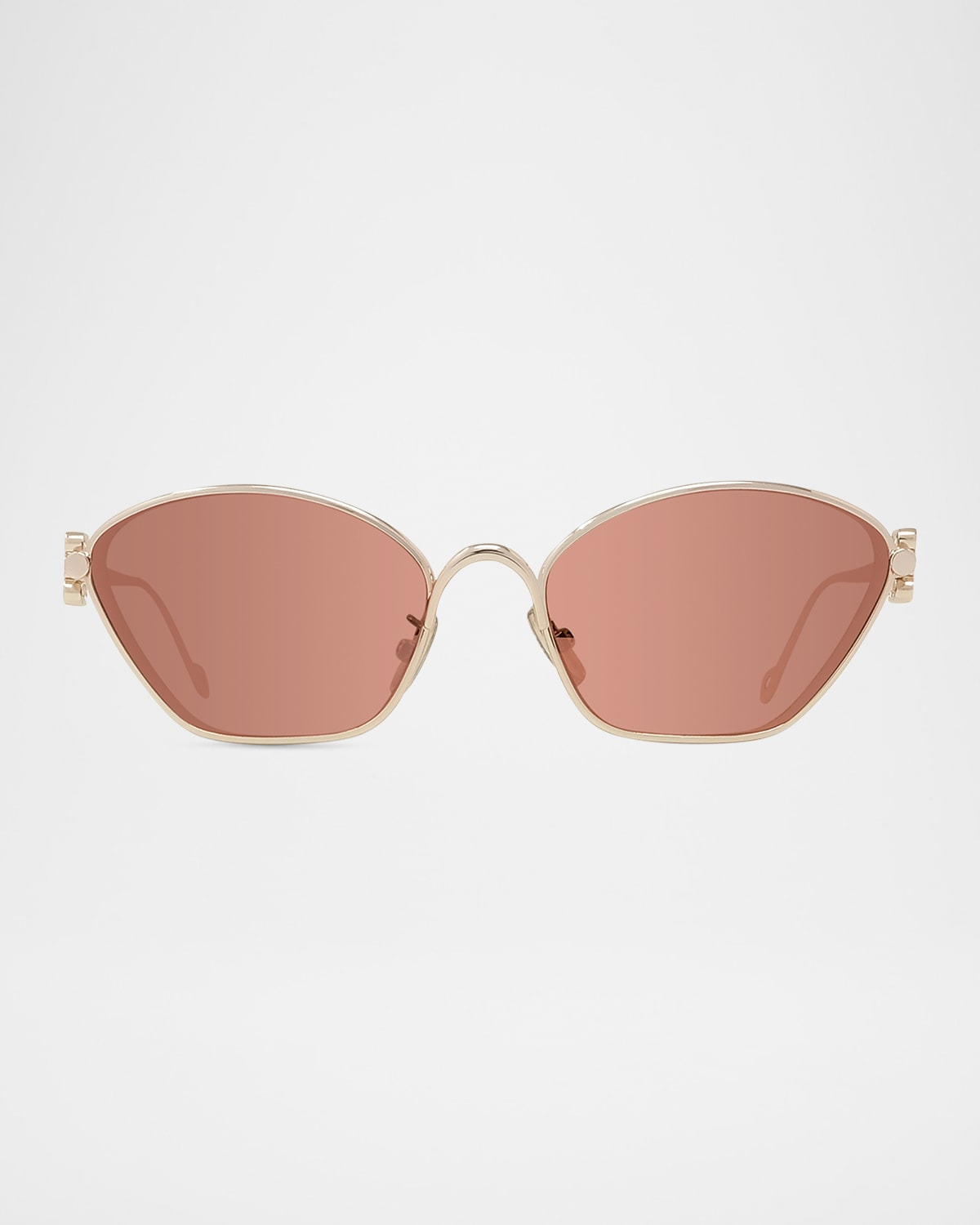 - Loewe sunglasses in metal - Recoloring of the cat eye metal shape in a new color aligned with the seasonal palette - Eye/bridge/temple (in mm): 40-18-140 - Eyewear style: Cat Eye - Metal - 100% UVA/UVB protection - Made in Italy - Proposition 65 warning for California residents