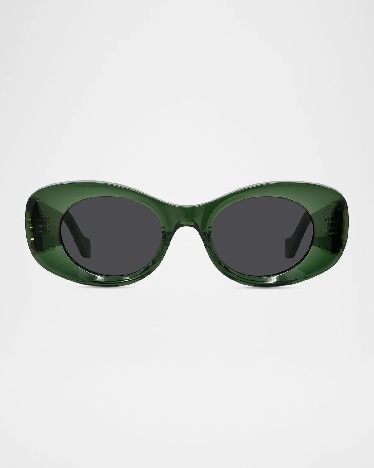 Loewe "Anagram" sunglasses in acetate are adorned with the collection's maxi anagram logo in relief on both temples Lens/bridge/temple (in mm): 4921145 Oval frames Acetate nose pads Wide, tapered arms 100% UVA/UVB protection Made in Italy