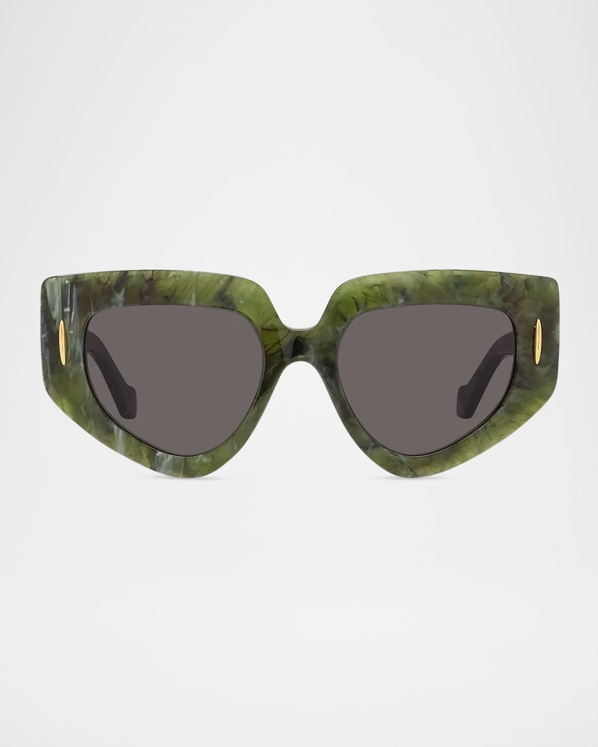 - Loewe sunglasses in acetate - New geometric shape within the screen story inside the anagram family, featuring the anagram logo on the temples and working around marbled acetates. - Eye/bridge/temple (in mm): 43.2-19-145 - Eyewear style: Shield - Acetate - 100% UVA/UVB protection - Made in Italy - Proposition 65 warning for California residents