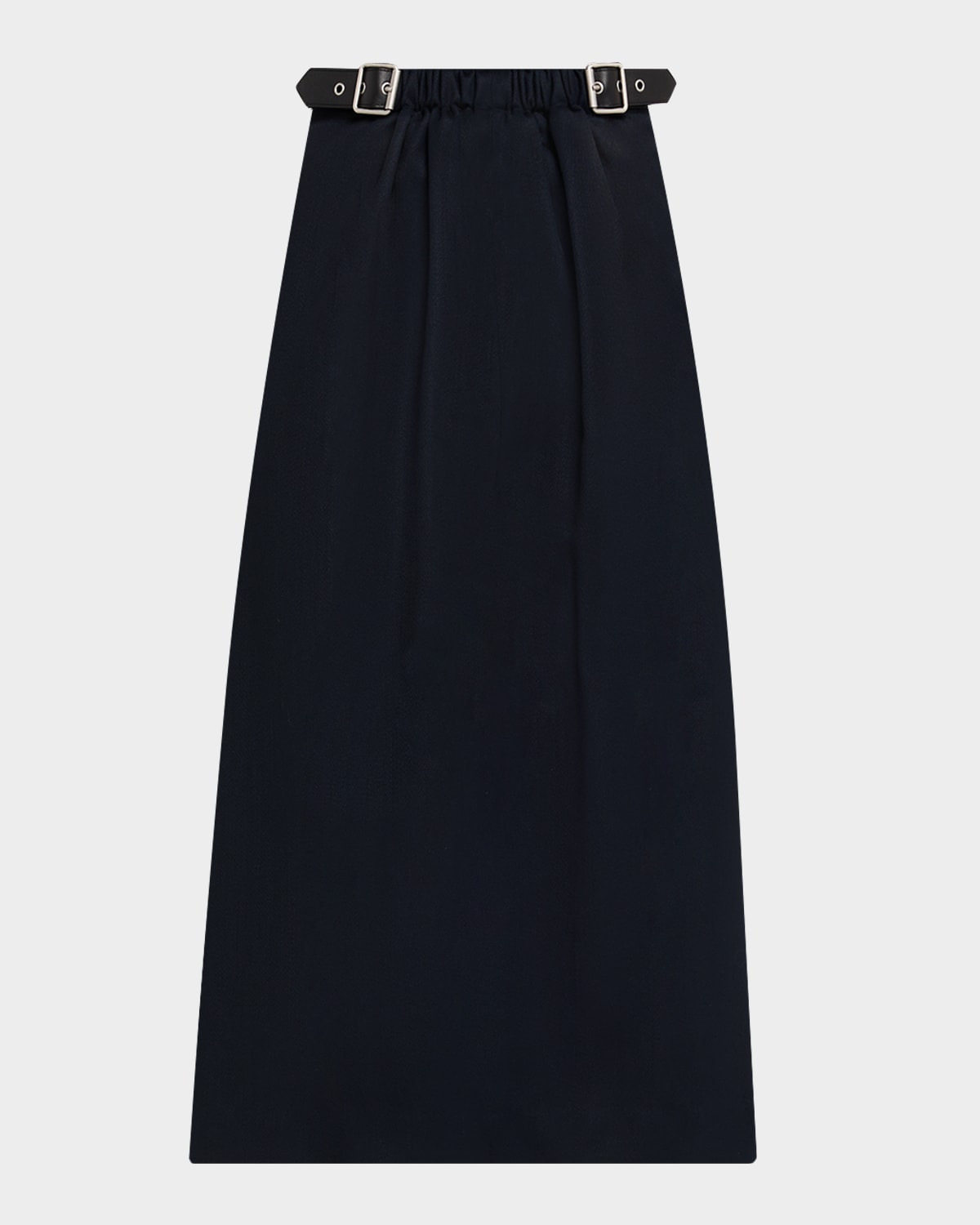 Loewe wool Bermuda trousers evoke relaxed elegance with a gathered waistband by calfskin leather double buckle fastening Mid rise sits high on hip Side slip pockets Back buttonwelt pocket Straight legs Cropped length Side zip closure Wool/leather/cotton Made in Italy