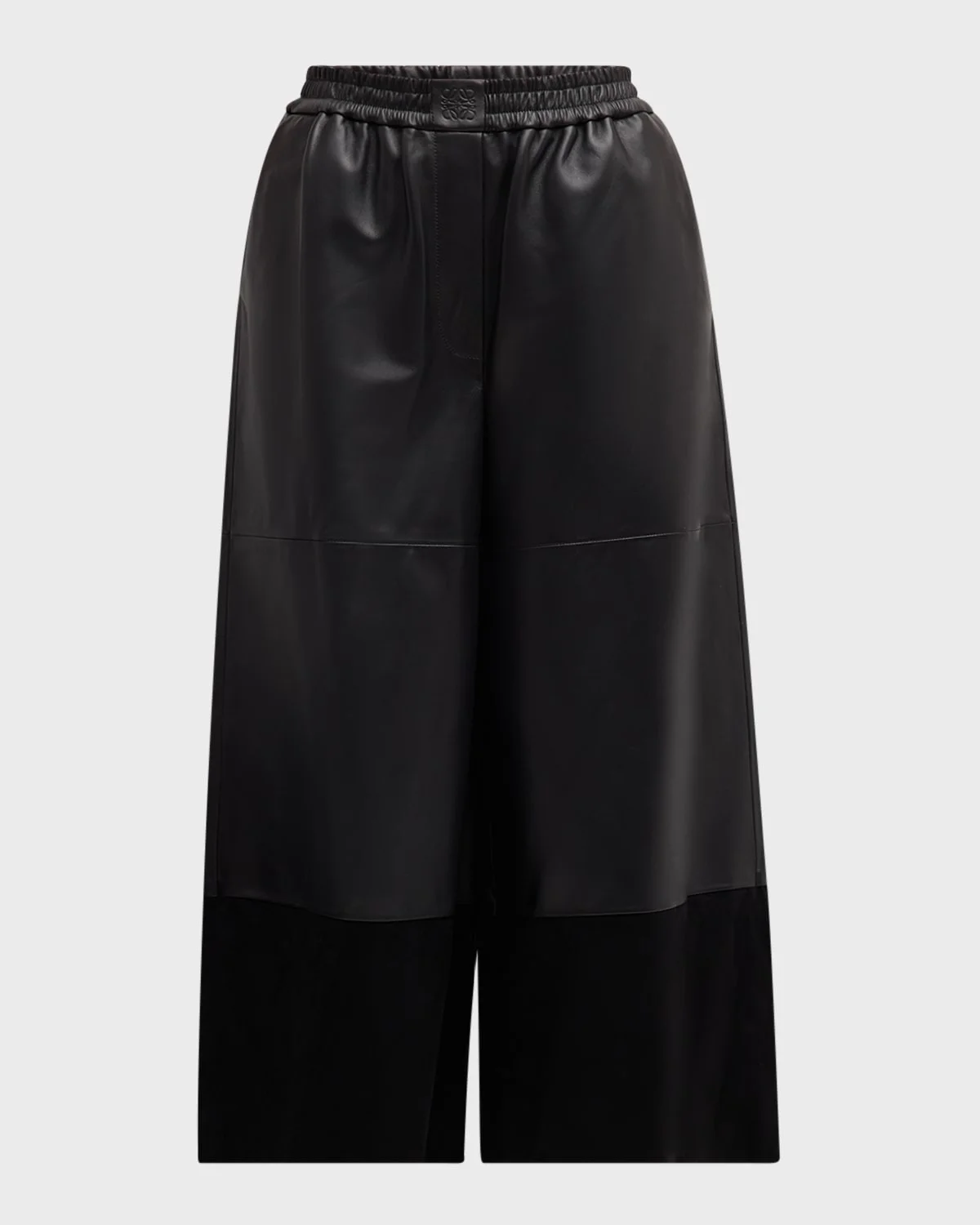 Loewe cropped leather and suede trousers High rise; elastic waist Wide legs Cropped fit Leather/leather/viscose Lining: Cotton/polyester/viscose Dry clean Made in Spain
