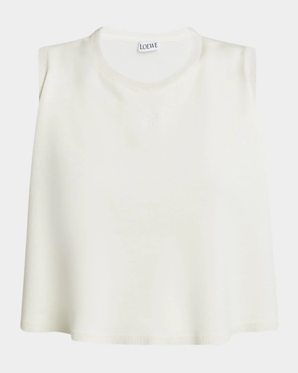 - Loewe double-layer sweater with embroidered Anagram logo on chest - Crew neckline - Sleeveless - Relaxed fit - Pullover style - Wool/polyester - Made in Italy