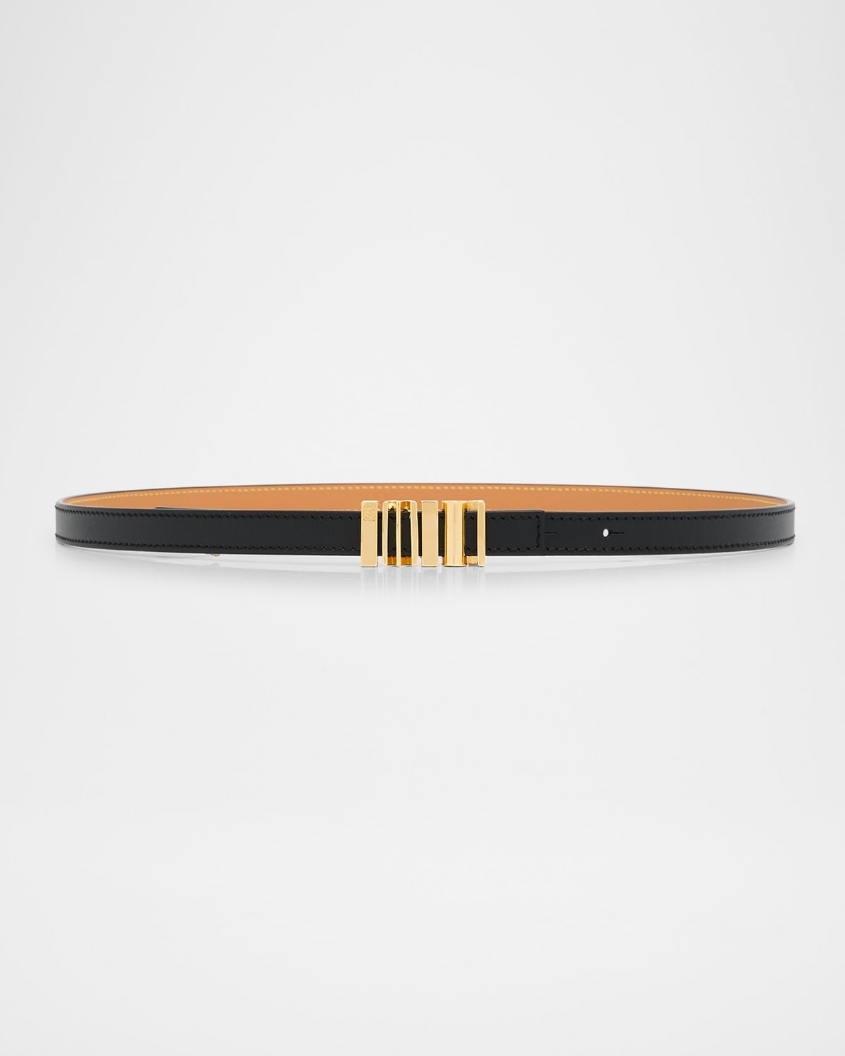 - Loewe skinny belt with graphic buckle with signature anagram engraving - Approx. 1.5 cm wide - Goldtone hardware - Adjustable fit - Calf leather - Professional cleaning recommended - Made in Spain