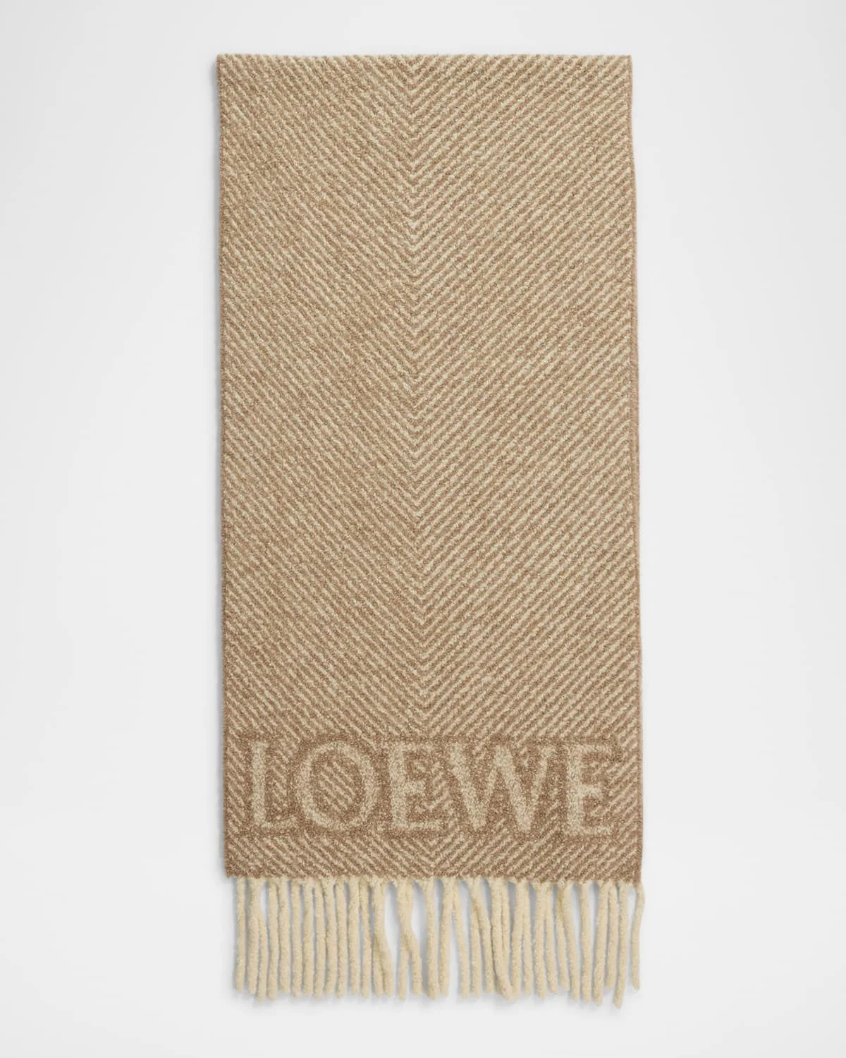 - Loewe textured scarf in wool and nylon - Approx. 72"L x 18.5"W - Fringe ends - Logo accent - May be styled multiple ways - Professional cleaning recommended - Made in Italy - This item cannot be sold or shipped to California.