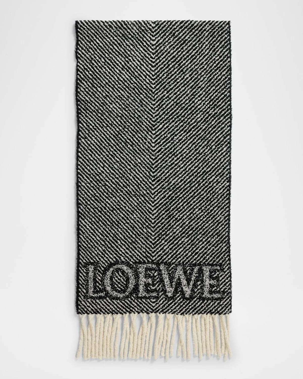 - Loewe textured scarf in wool and nylon - Approx. 72"L x 18.5"W - Fringe ends - Logo accent - May be styled multiple ways - Professional cleaning recommended - Made in Italy - This item cannot be sold or shipped to California.