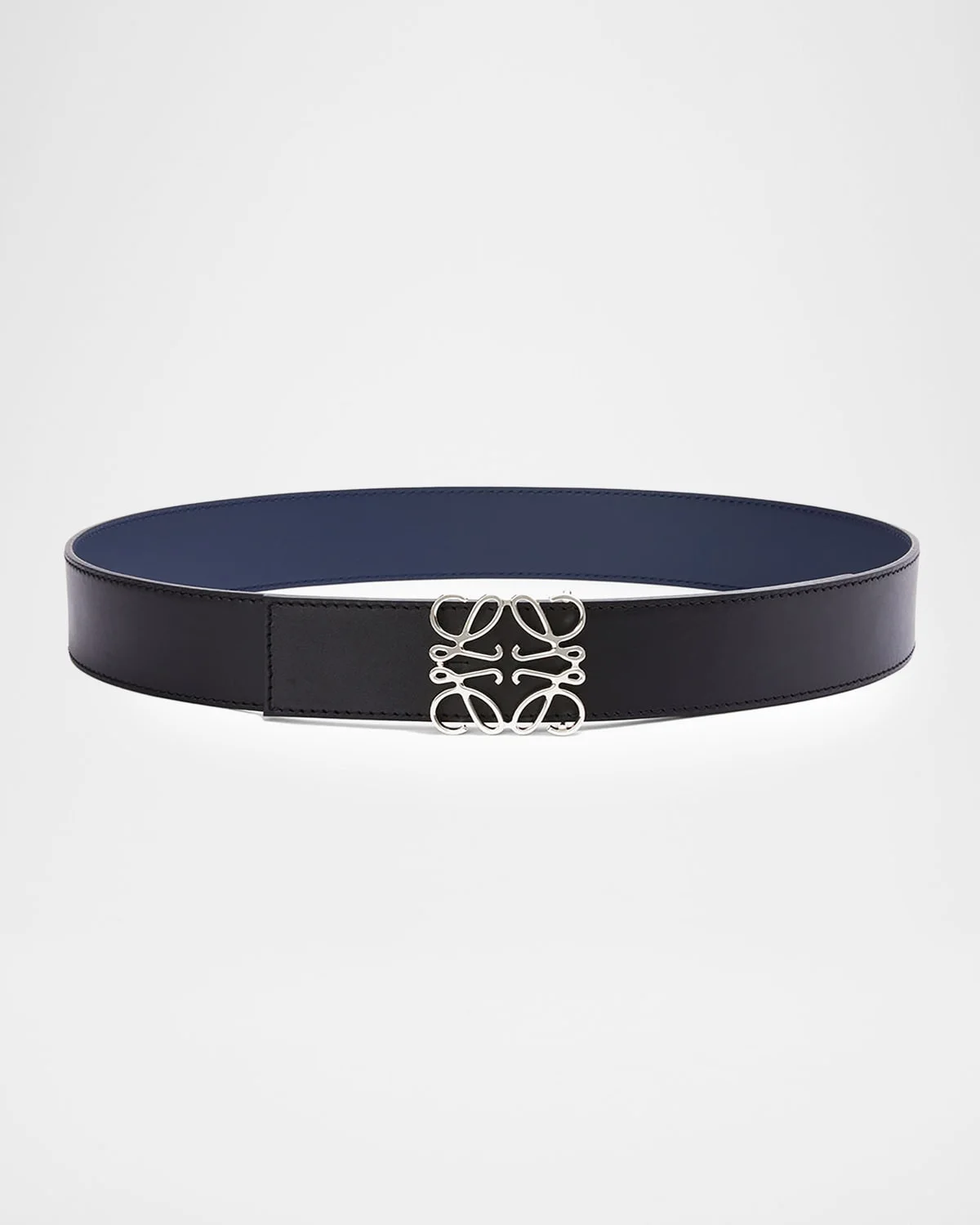 This smooth leather belt by LOEWE reverses from black to tan for a versatile accessory Anagram pin buckle in silvertone metal Adjustable fit; five holes Spot clean Made in Spain