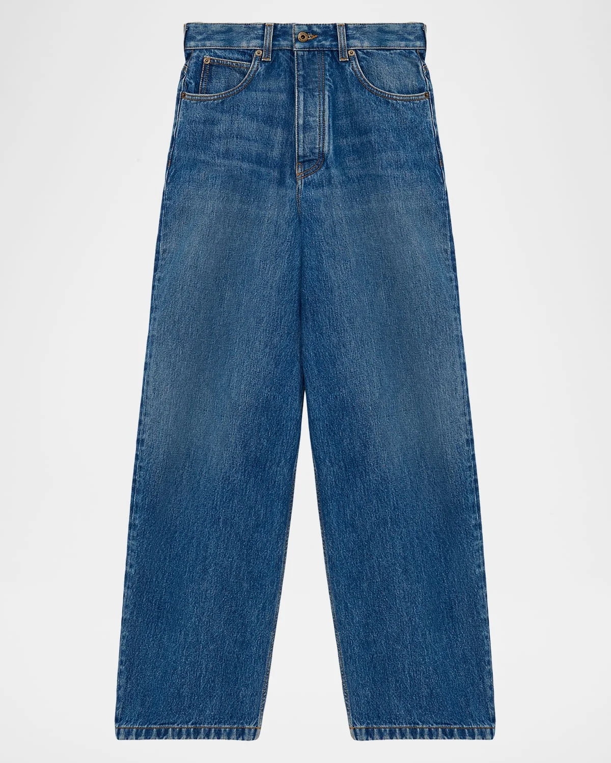 Light whiskering details these Loewe cropped blue jeans. Regular rise Fivepocket style Leather logo patch at the back Relaxed fit Concealed zip fly Cotton/leather Dry clean Made in Italy