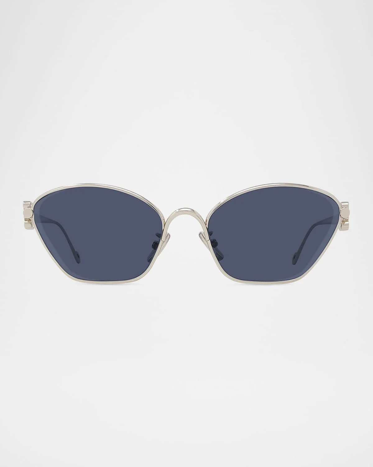 - Loewe metal cat eye sunglasses with signature anagram on both temples - Eye/bridge/temple (in mm): 57-18-140 - Solid lenses - Adjustable nose pads - Signature logo on temples - Thin, tapered arms - Capped earpieces - Metal - Hand wash - 100% UVA/UVB protection - Made in Italy - Proposition 65 warning for California residents - This product contains perfluoroalkyl and polyfluoroalkyl substances (PFAS). For more information, please visit the manufacturer’s website.