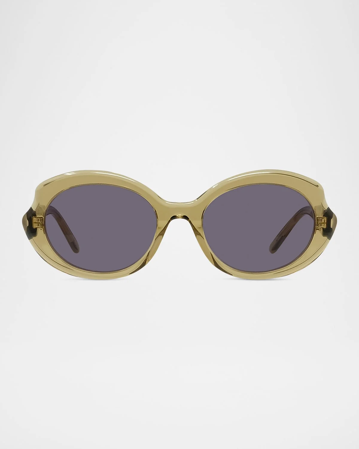 Loewe ovalshaped sunglasses crafted of translucent acetate for a modern, minimalist effect Eye/bridge/temple (in mm): 5420140 Monochromatic lenses Saddle nose bridge Goldtone branded lettering at temples Thin, tapered arms 100% UVA/UVB protection Acetate Hand wash Made in Italy