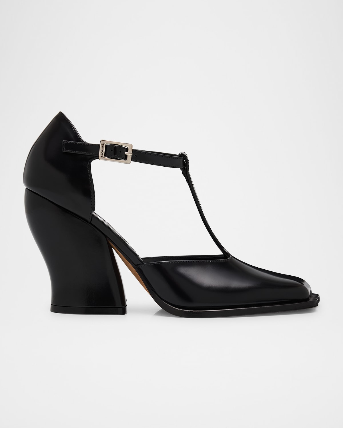 - Loewe "Onda" pumps crafted from smooth calfskin and lambskin leather - 3.50 in / 90 mm block heel - Asymmetric square toe - T-strap vamp - Buckle ankle strap - Leather outsole - Made in Italy