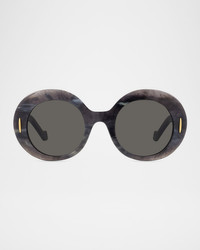 - Loewe oval sunglasses in acetate - Eye/bridge/temple (in mm): 50-24-140 - Solid lenses - Saddle nose bridge - Thick, tapered legs - Signature metal anagram on both temples - Acetate/nylon/polyamide - Hand wash - 100% UVA/UVB protection - Made in Italy - Proposition 65 warning for California residents - This product contains perfluoroalkyl and polyfluoroalkyl substances (PFAS). For more information, please visit the manufacturer’s website.