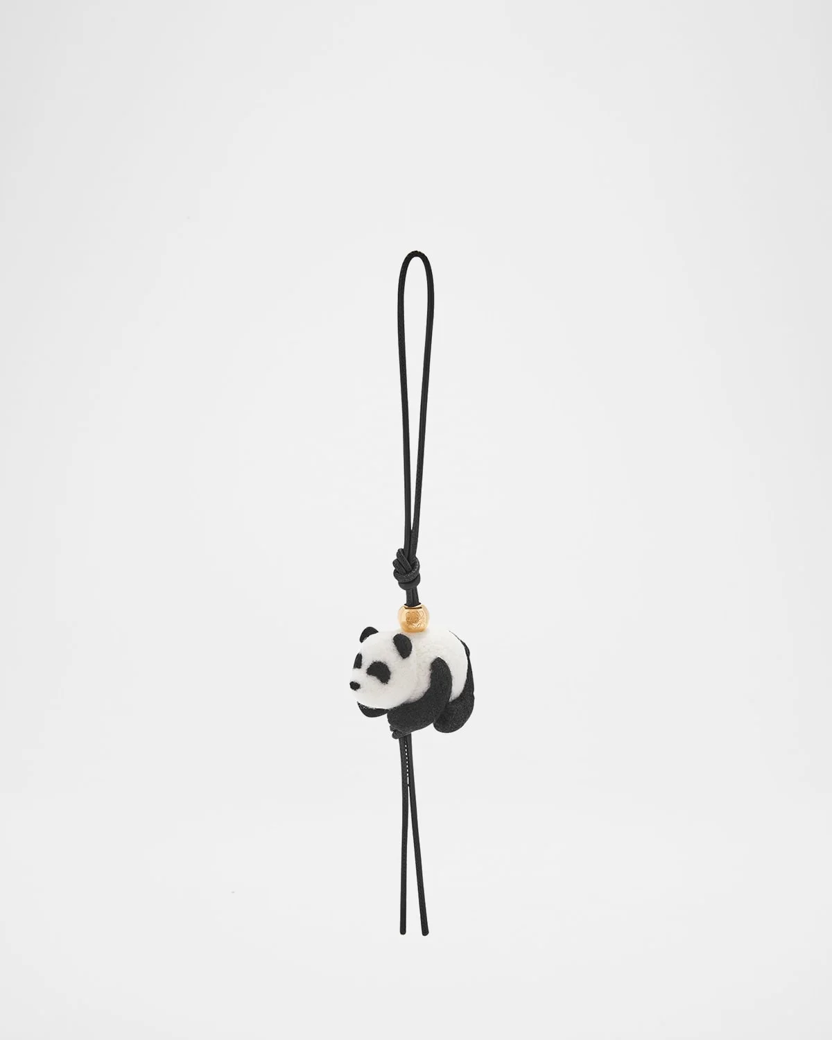 Loewe wool panda charm features signature Anagram metal bead Leather strap Approx. 14.8"H x 3"W Made in Spain