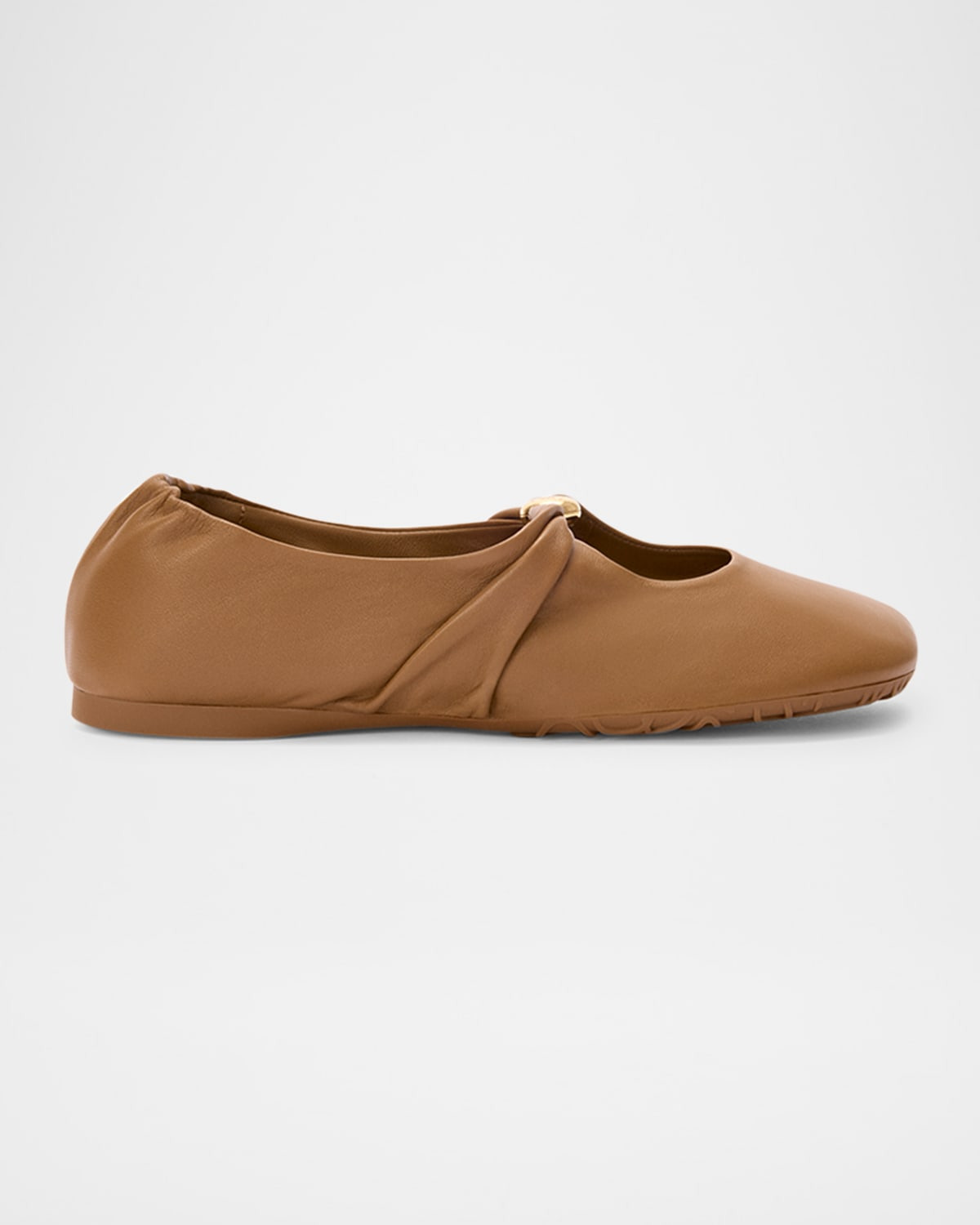- Loewe "Pebble" ballerina flats in soft leather and faux leather (polyurethane) - Flat heel - Closed round toe - Twisted vamp strap with gold-tone Anagram logo hardware - Slip-on style - Lightweight, sturdy TPU outsole - Lining: Unlined - Made in Italy