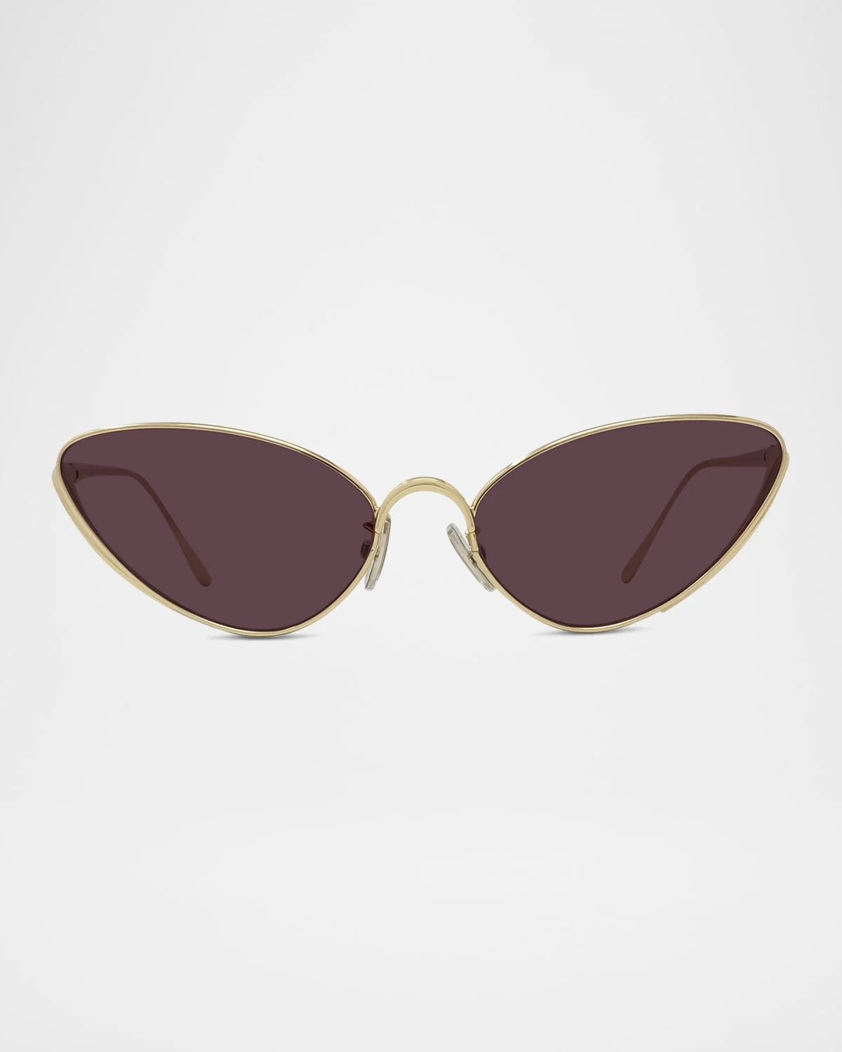 Crafted from goldtone metal, these Loewe sunglasses feature bold cateye lenses framed by sculpted bevels Eye/bridge/temple (in mm): 5918120 Monochromatic lenses Adjustable nose pads Thin, tapered arms Logo lasered on both temples 100% UVA/UVB protection Metal Hand wash Made in Italy