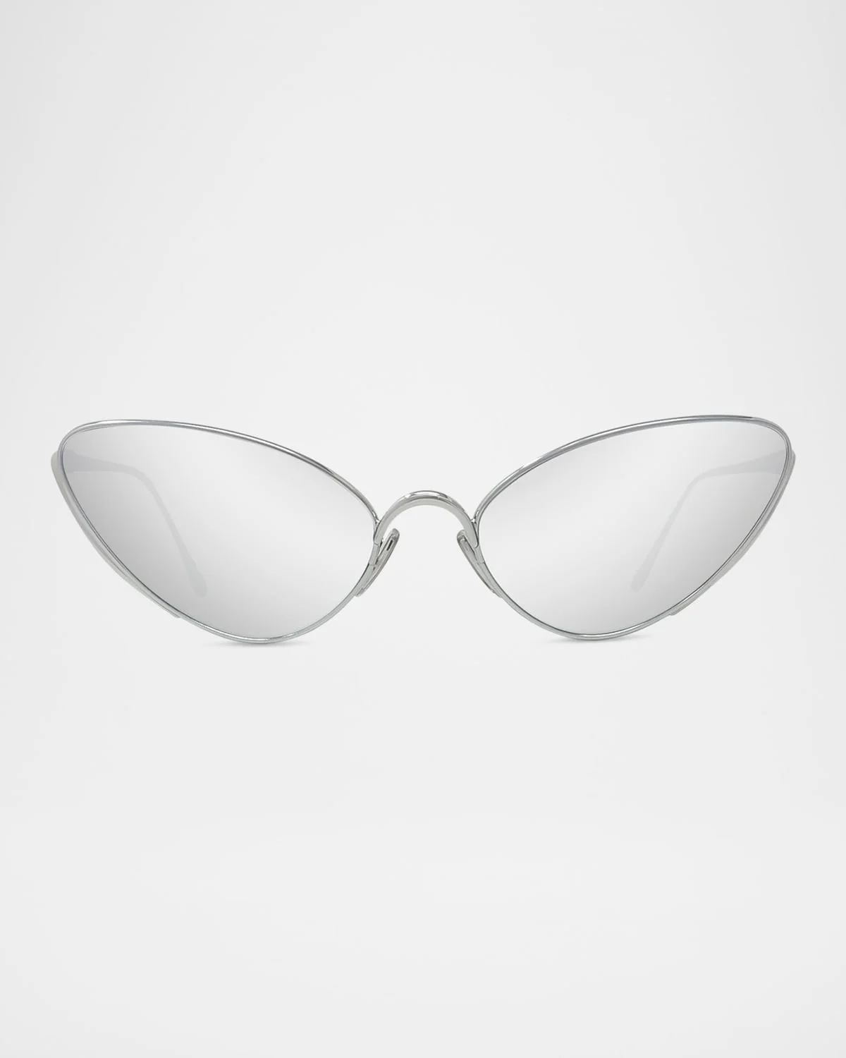 Crafted from silvertone metal, these Loewe sunglasses feature bold cateye lenses framed by sculpted bevels Eye/bridge/temple (in mm): 5918120 Monochromatic lenses Adjustable nose pads Thin, tapered arms Logo lasered on both temples 100% UVA/UVB protection Metal Hand wash Made in Italy
