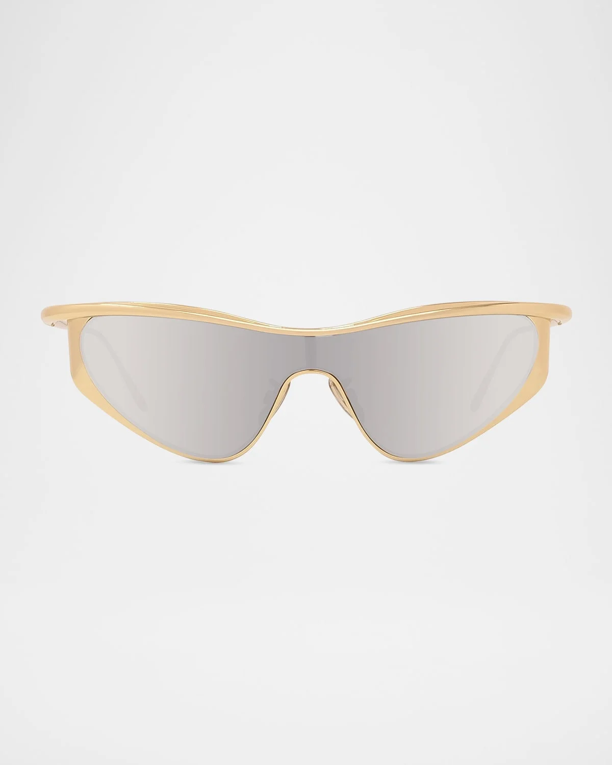 - Loewe "Signature" shield sunglasses in metal and nylon - Lens/bridge/temple (in mm): 125.4-0-120 - Mirrored lenses - Loewe logo lasered on both temples - Side cover shield - Thin, tapered arms - Hand wash - 100% UVA/UVB protection - Made in Italy - Proposition 65 warning for California residents - This product contains perfluoroalkyl and polyfluoroalkyl substances (PFAS). For more information, please visit the manufacturer’s website.